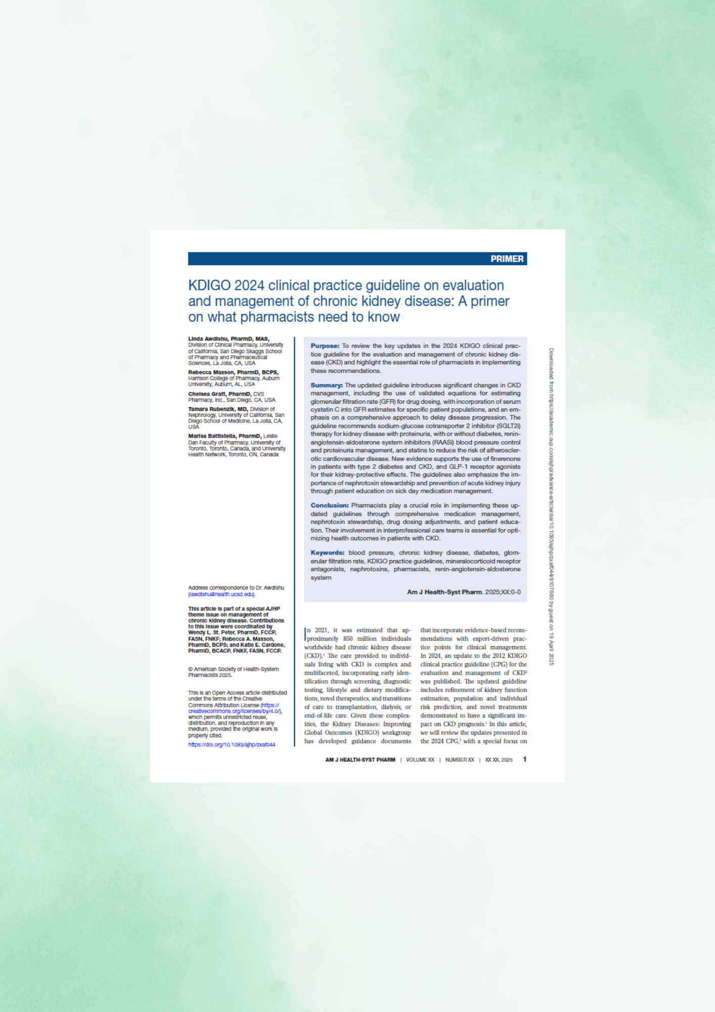 KDIGO 2024 clinical practice guideline on evaluation and management of chronic kidney disease: A primer on what pharmacists need to know Posted on มิถุนายน 4, 2025มิถุนายน 4, 2025 by loukkhwan loukkhwan KDIGO 2024 clinical practice guideline on evaluation and management of chronic kidney disease: A primer on what pharmacists need to know Awdishu L et al. 2024 Read แนวทางเวชปฏิบัติการรักษาโรคติดเชื้อทางเดินปัสสาวะ พ.ศ. 2568 เวชปฏิบัติในการดูแลรักษาผู้ป่วยที่ถูกสัตว์กัดและป้องกันโรคพิษสุนัขบ้า